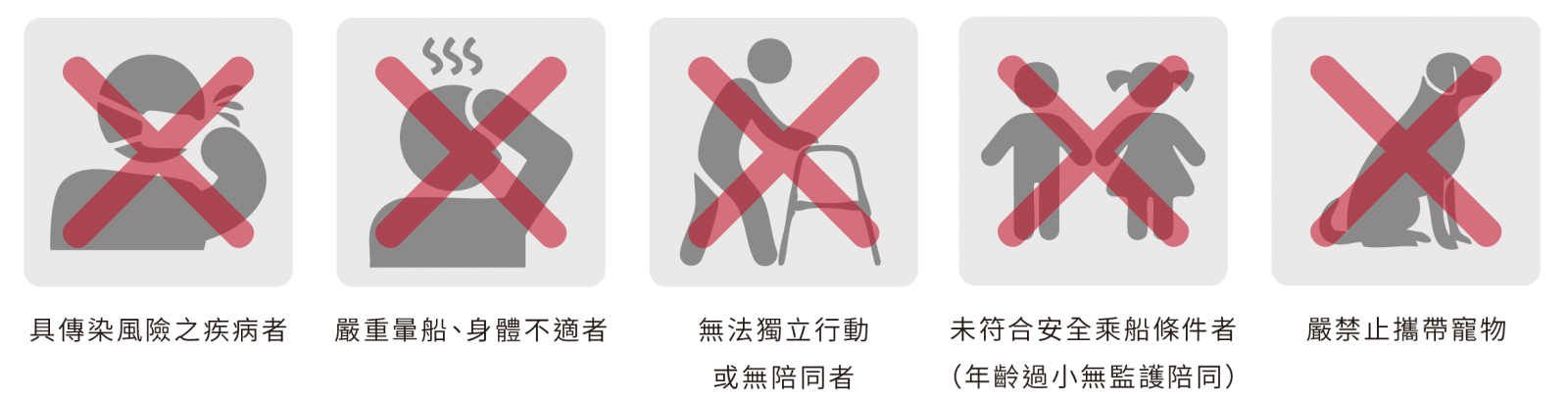為確保所有旅客的安全與乘船體驗品質,敬請遵守以下搭乘規範: