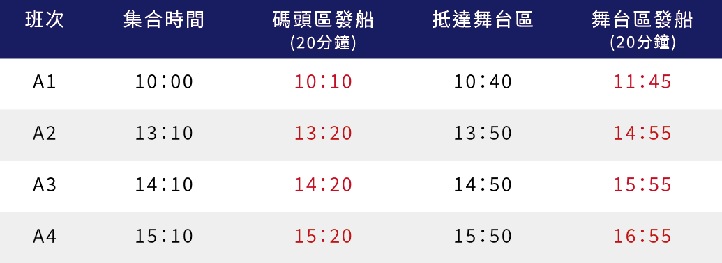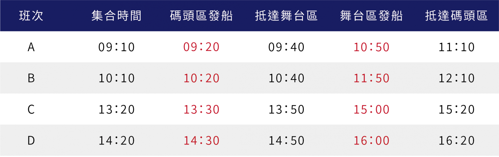 2.建議您提前抵達碼頭,以預留交通與排隊時間,確保順利登船。