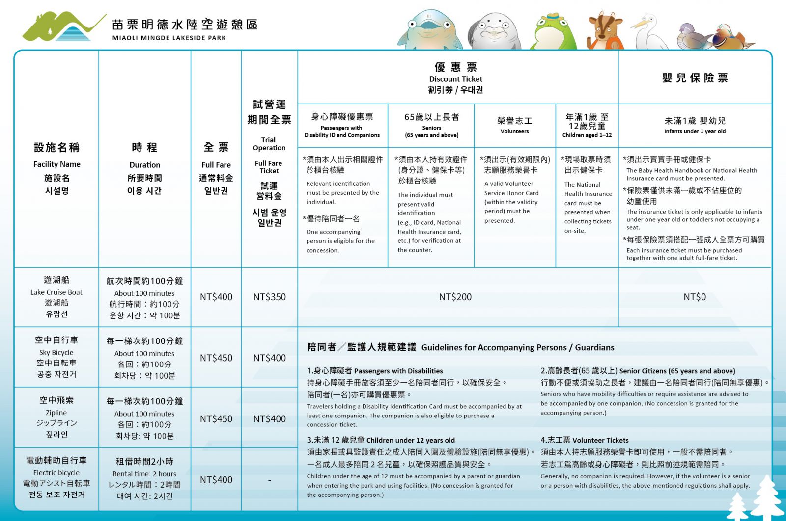 6.購買遊湖船之優惠票種或嬰兒保險票請攜帶有效證明文件,於現場領票時供工作人員查驗,若不符優惠資格,須現場以現金補足差額。