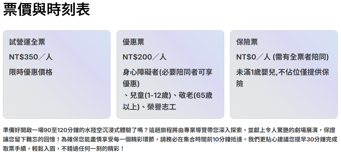 🎟️ 提醒您:每日船班人數有限,建議提前購票,現場僅販售補位。